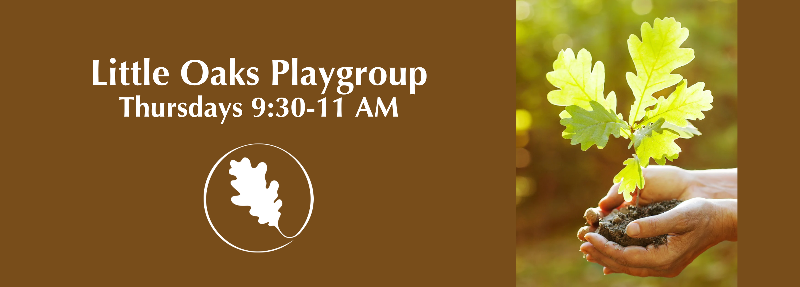 Join us on Thursdays at the Oak Arbor Church & Montessori School. In nice weather, we will be outside at the playground. In colder/rainy weather, we will be inside the spacious social hall. Bathroom facilities, and a changing table is available.