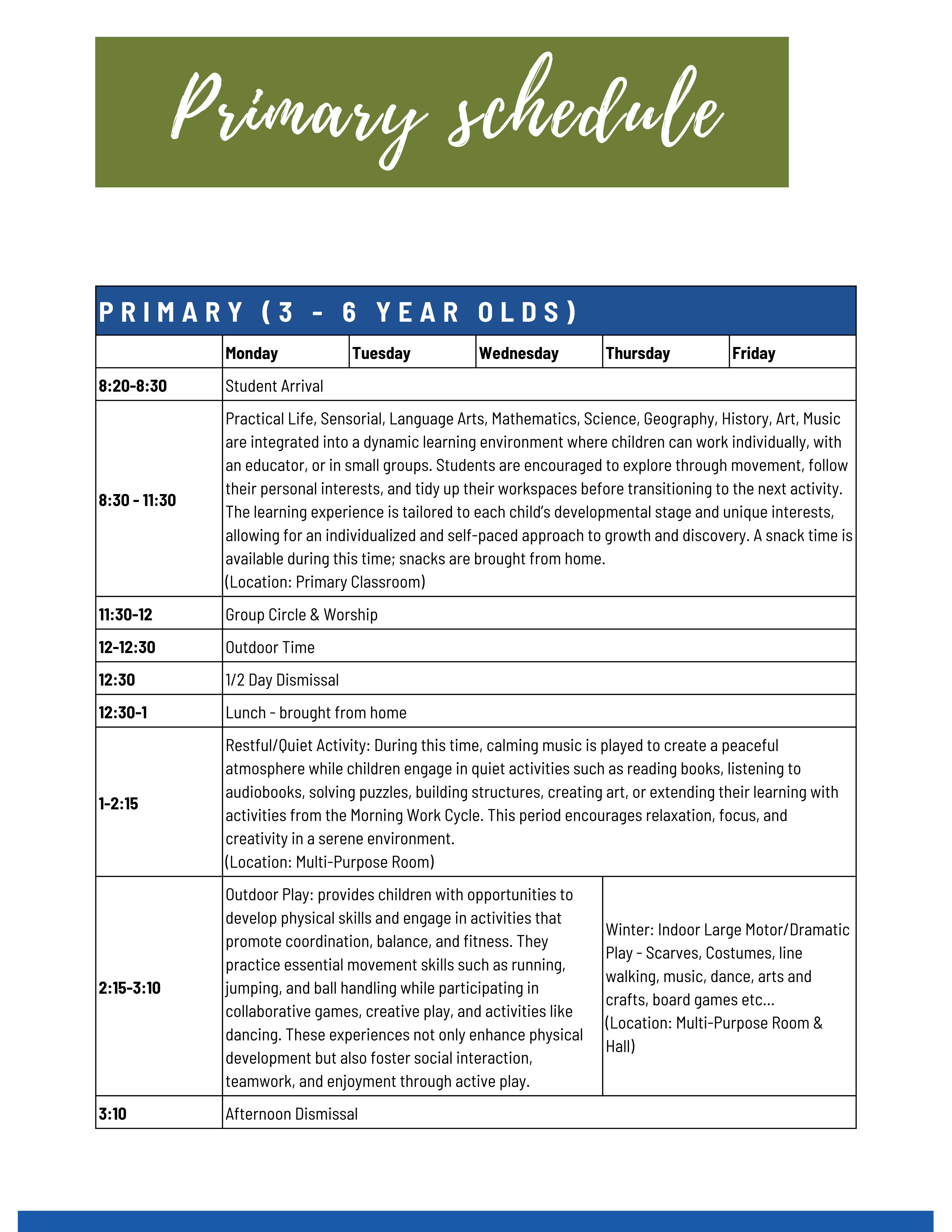 The Primary classroom is more than a place to learn — it’s a community where each child is seen, valued, and supported.